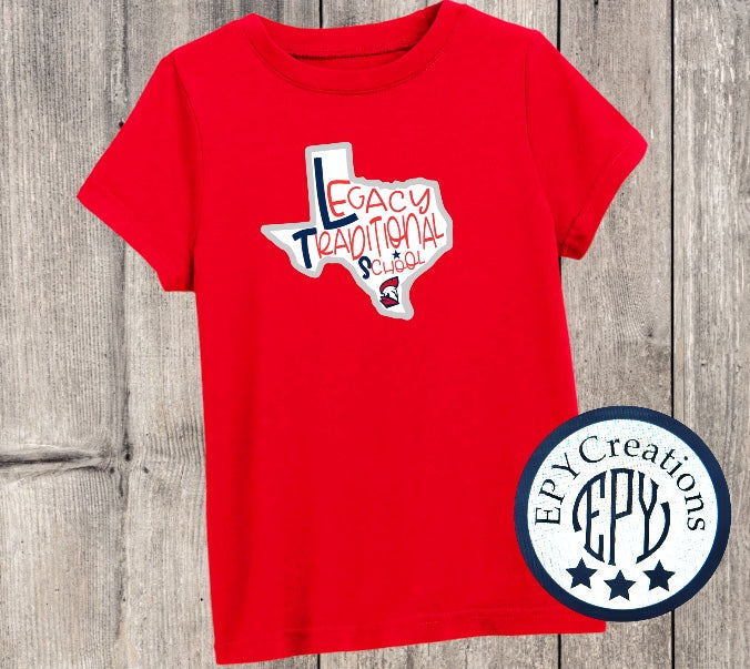 LTS Legacy Traditional School new Texas logo! Design is a direct to film transfer. See sizing guide for each item in pictures.