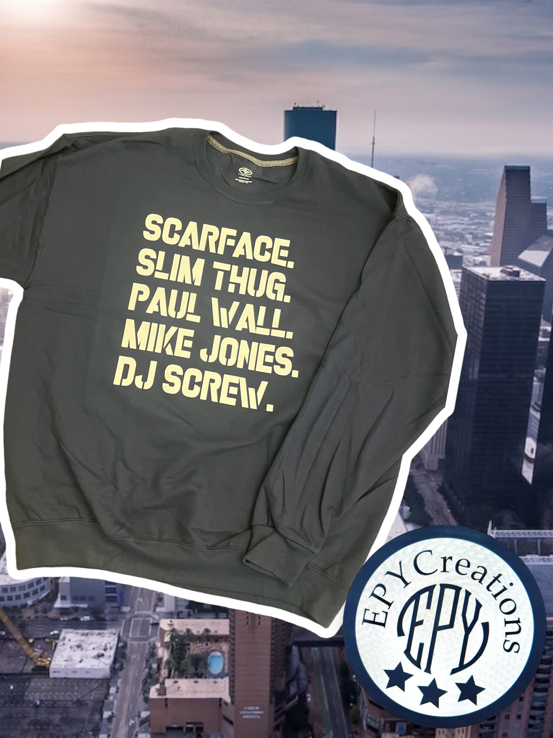 Hip Hop Crew Neck. Sold as shown in picture. This is a black crew neck with cream vinyl writing.