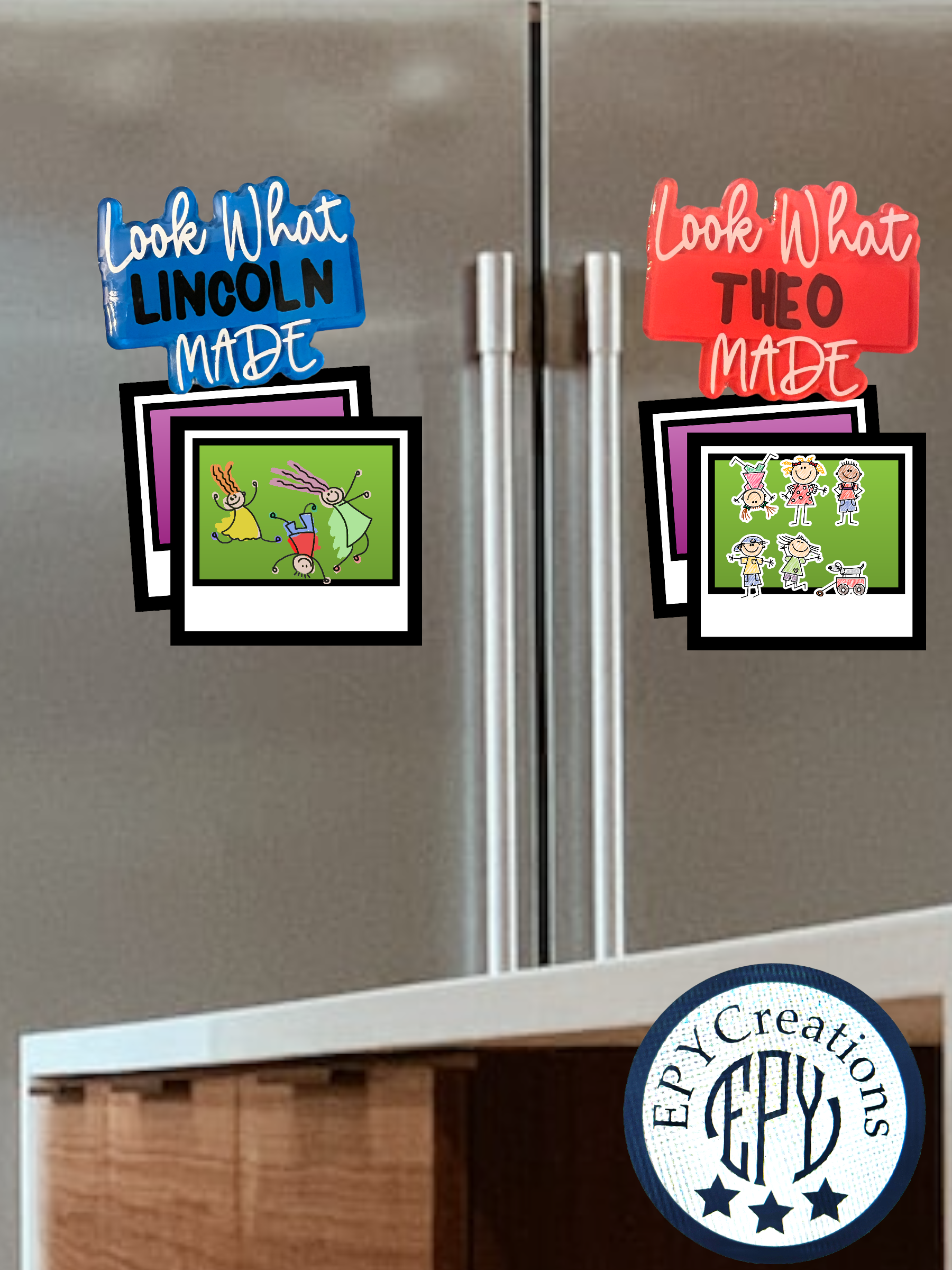 Want to show off your little’s artwork?! Custom magnets to place their amazing artwork on the refrigerator 💙